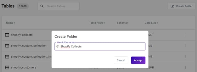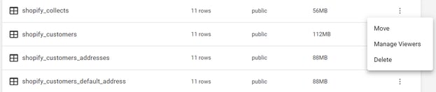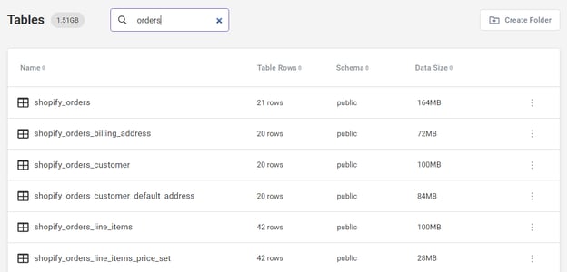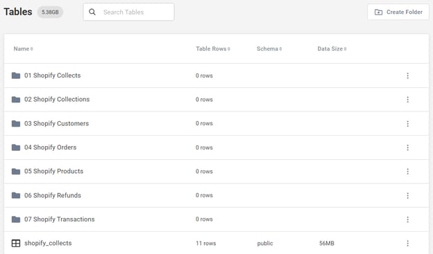 Step 1. In this case, the data source name is Shopify, so all the tables will have a shopify_ prefix.
