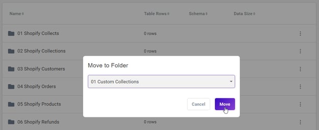 Step 8. Choose the folder where you want to move the table and click on Move.