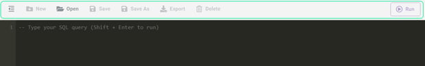 On the right side, there is a sub-menu which allows you to perform data manipulation. Beside running queries (Run or Shift+Enter) and exporting result sets as CSV files (Export), you can also do some manipulation on views:
