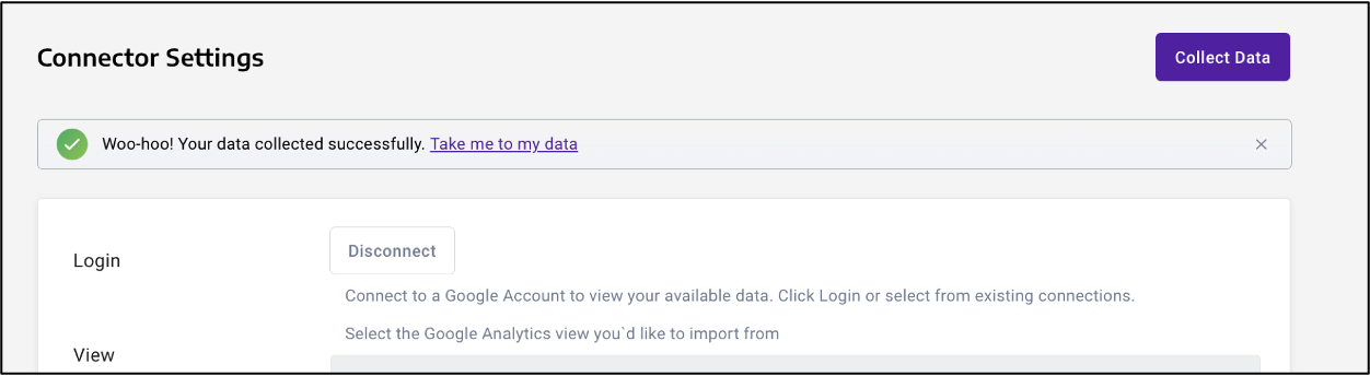 3. Click “Save changes”, then “Collect data” in the upper righthand corner. Then, you’ll see the screen letting you know your data source is collecting, and another when the collection finished successfully: